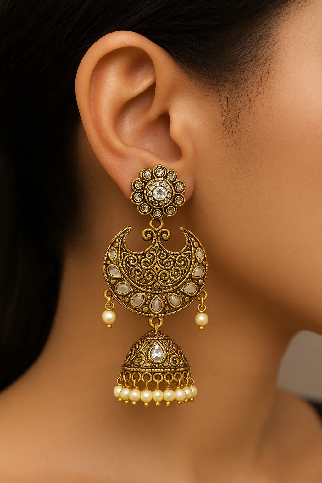Oxidized Gold & Green Jhumkas | Traditional Indian Bell Earrings