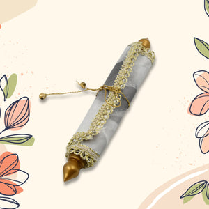- Stylish: These stylish envelopes have been made using fabric and a golden lace. The envelope is delicately attached on the inside and the scroll is secured using beautiful golden string.